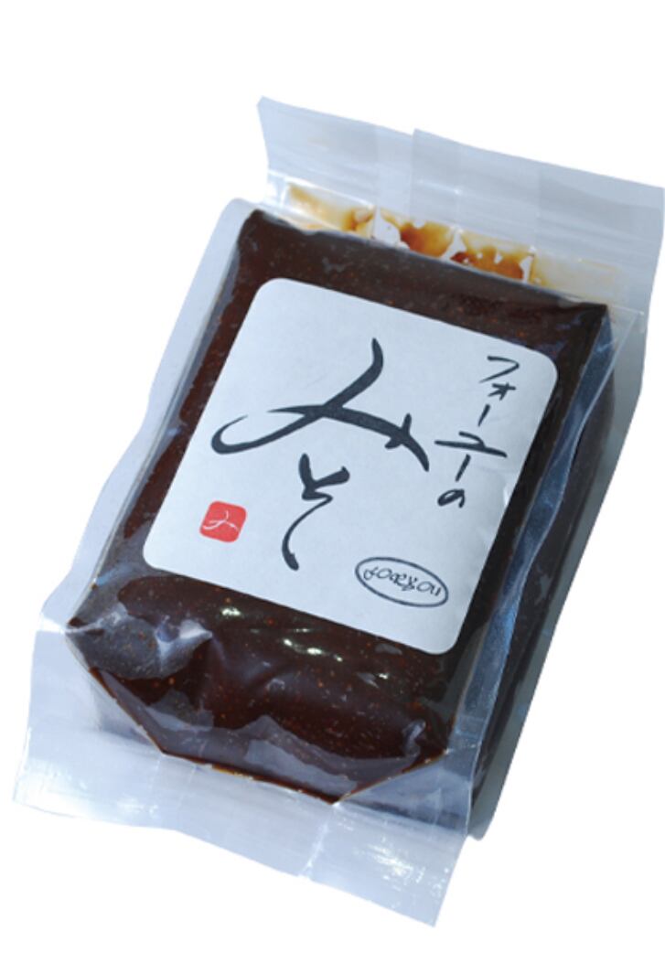 伝説の味噌蔵、南蔵の匠とフォーユーの技術の融合。 明治初頭から受け継がれた匠の技を持つ南蔵で、国産大豆とフォーユーのマザーソルトを使い木桶の中で2年半寝かせて仕上げました。